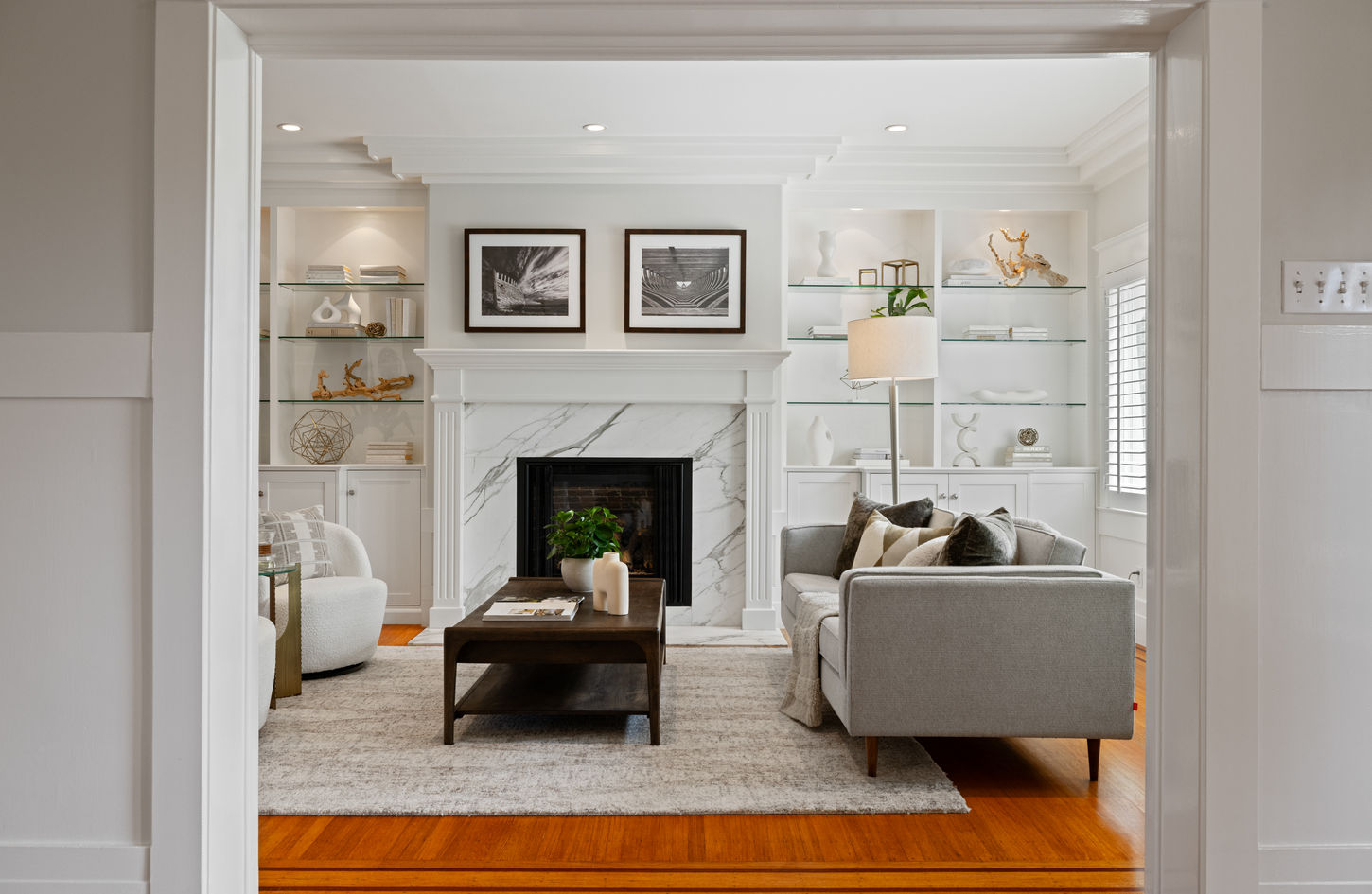 This stunning remodeled Craftsman Edwardian home built in 1912 is tucked away on a wonderful block facing a delightful promenade, close to shops, restaurants, public transportation and Golden Gate Park! An inviting terrazzo staircase leads to a columned open-arched vestibule with decorative corbels, exquisite mosaic tile landing and a notable front door that opens into a grand foyer with greeting hall. The stately formal living room with gorgeous tray ceiling and recessed lighting boasts an imposing gas fireplace with classic mantel surround, built-in bookshelves on either side, lovely hardwood floors, plantation shutters, picture windows and views to a bucolic parkway. The splendid, banquet-size open dining room with extraordinary original pocket doors, striking light fixture and views to the garden is perfect for entertaining! The beautifully remodeled gourmet kitchen with huge work island and breakfast bar showcases all stainless-steel appliances, including a Thermador Professional gas range with Viking hood, Bosch dishwasher and KitchenAid refrigerator, marble counters, pantry closet and handsome custom cabinets with stylish hardware. A pleasant, light-filled lanai with access to an outdoor deck and a convenient powder room end this floor.