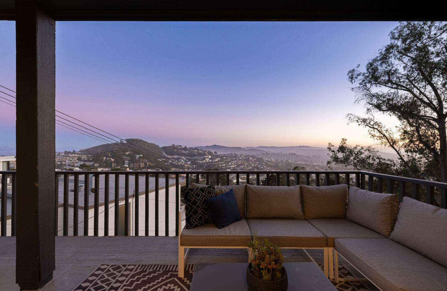 This chic Contemporary view home built in 1965 is perched high on a hill with sweeping views from the North Bay and Marin Headlands to Sutro Tower and Twin Peaks to the East Bay and Mt. Davidson! A brick walkway with gated entrance leads to large double doors and into a spacious foyer with coat closet, grand open staircase and enormous picture window with dramatic views. The magnificent formal living room with classic wood-burning fireplace, built-in seating and bookshelves, recessed lighting and hardwood floors boasts a fabulous walk-out deck with spectacular views from the East Bay to Mt. Davidson and the southern hills and towards the Pacific Ocean. The banquet-size formal dining room with awesome views from the North Bay and Marin Headlands to Sutro Tower and Twin Peaks is perfect for entertaining! The huge kitchen with comfortable breakfast area and window balcony showcases a Frigidaire gas range and microwave and a butler's pantry with wine fridge and storage. A convenient blue tiled powder room with vanity sink and wall mirror ends this level.